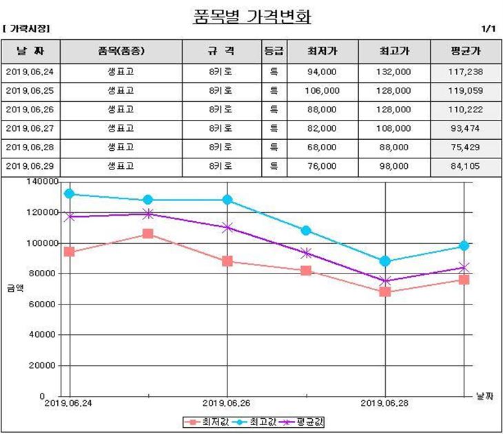 시세: 식자재 납품 및 군납 증가 및 신규출하처 고품질 표고 반입으로 인한 시세 상승세 전망 |